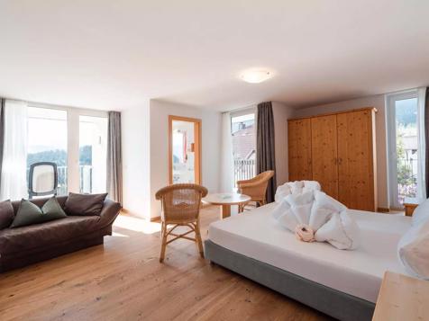 Our hotel is a cosy holiday home far away from the everyday hustle and bustle: here you can experience alpine nature and breathe in the fresh mountain air. Our rooms and suites are cosy, furnished in typical Alpine style and offer a fantastic view of the surrounding mountains. We spoil our guests with a rich breakfast buffet in the morning and a 4-course menu of your choice in the evening.