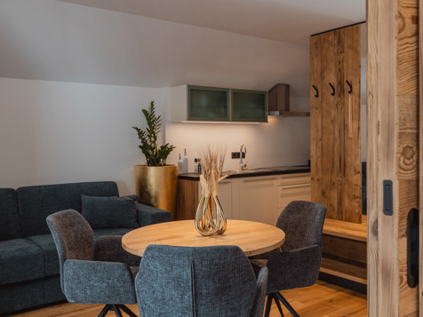 Whether Edelweiss or Alpenrose – both apartments at Hofmann Apartments in the Dolomites offer space for 2-4 people and a balcony, cosy furnishings and modern comforts such as free WLAN and flat-screen TV. The apartments are non-smoking and have a fully equipped kitchen (with salt, vinegar, oil, dishwasher, fridge with freezer compartment and much more) and a bathroom with WC, shower, bidet and hairdryer. For house guests, there is a wine cabinet in the entrance lobby and a garden barbecue. There are also car parking spaces, a ski room and a depot for bicycles and hiking boots. The weekly change of bed linen, towels and kitchen towels is included in the price.