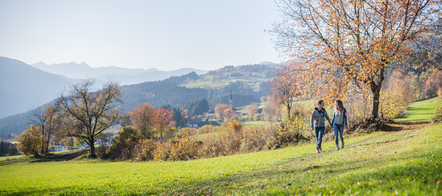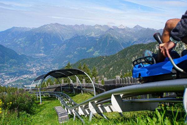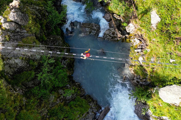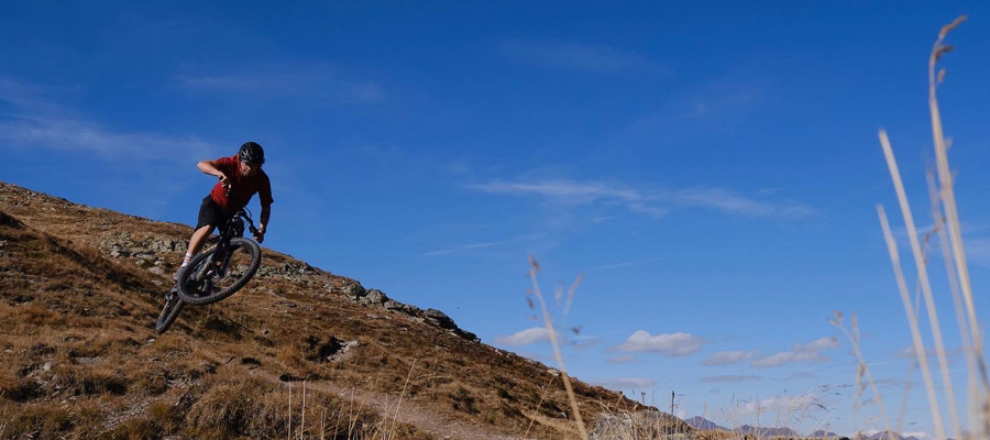 After the problem-free start, things get really exciting! On the Dragon Trail, the most important and challenging shot of the entire shoot is on the programme: Julian's fall from his mountain bike. We kit Julian out with the GoPro again, cover up our growing nervousness with words of encouragement, and off we go! Julian pedals hard, takes the bend at breakneck speed, and falls over the handlebars into the meadow next to the bike trail. It looks brutal from our perspective, but Julian calls out to us that everything is okay. Relief is followed by disillusionment: when we look at the shot on our mobile phones, we realise that it unfortunately doesn't have the effect we had hoped for. The second attempt doesn't produce the desired result either. Fortunately, Julian is just right for the job: fearless and uncomplicated. Everything works perfectly on the third attempt. We all take a deep breath. Then we walk up to the mountain station and take the cable car down into the valley to Olang together.