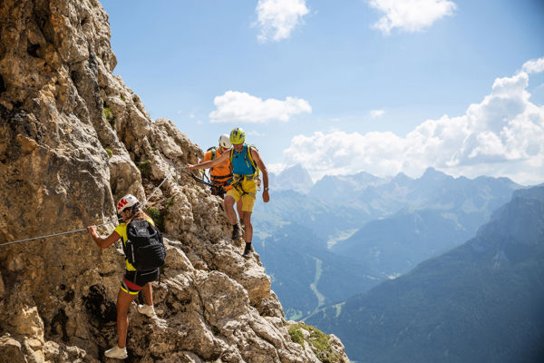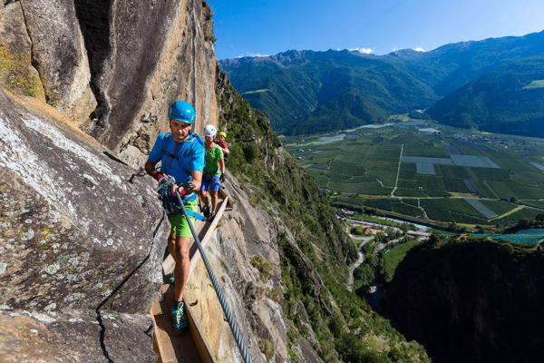 The impressive fixed-rope route can be reached from Moos in Passeier. It impresses by a wonderful view of the surroundings and challenging passages.