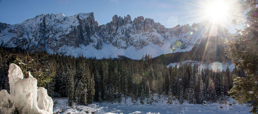 In winter, the popular bathing lake becomes on Ritten becomes an ice-skating rink.