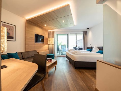 The kitchen team at our gourmet hotel will spoil you in the morning with a delicious breakfast, in the afternoon with a varied cake buffet and in the evening with a refined 5-course menu with salad and starter buffet. You can also book a private breakfast or dinner on the jetty. The wellness area of our Parc Hotel at Lake Kaltern leaves nothing to be desired with its indoor pool and whirlpool, saunas, spa, meditation room and relaxation lounge and also offers the opportunity for romantic togetherness at the private spa.