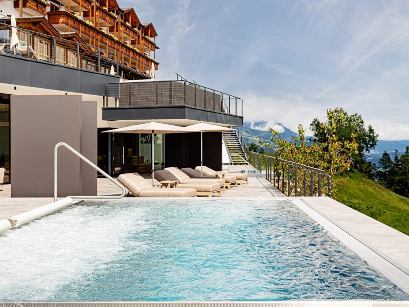 The wellness area at the Panoramahotel Huberhof offers a 27-metre-long infinity pool with outdoor and indoor area, which is heated all year round. Kids have fun in the indoor action pool with whirlpool function and waterfall. Guests aged 16 and over can enjoy relaxing breaks in the sauna area, which comprises five saunas, two relaxation rooms and, as new highlights, an outdoor whirlpool, a cold pool with panoramic views and an outdoor relaxation oasis. We spoil guests of all ages with our extensive breakfast buffet and an afternoon buffet with homemade cakes (also gluten- and lactose-free) and savoury delicacies. In the evening, you can enjoy varied 4-course menus and a salad buffet.