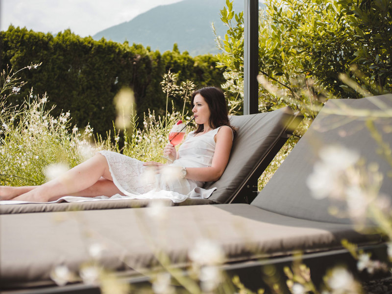 The new, light-flooded spa area with yoga and meditation room, relaxation area, sauna and steam bath is ideal for relaxing moments. Outside, we also offer a bio nature pool, sunbeds and swing beds as well as the beautiful pine garden with relax areas. Available are also a playground and a playroom for children. In summer, we offer a varied children’s programme. Dogs are more than welcome. We invite you to enjoy a special holiday with great activities, gourmet highlights and many sunny hours. At Hotel Im Tiefenbrunn in Lana, in the heart Meran and environs, you can spend carefree holidays with your loved ones and discover nature by hiking, biking or making yoga.