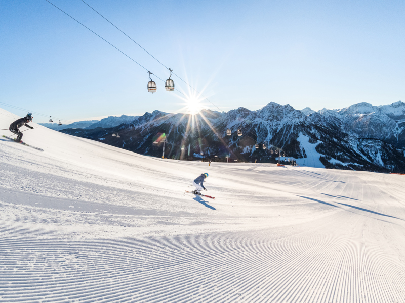 Our dreamlike mountain world and a varied offer of outdoor activities is waiting for our guests, including hiking, cycling and paragliding in summer, and skiing, cross-country skiing and ice skating in winter. With our hotel shuttle, you can easily reach the lift facilities, 300 m from our hotel. As well, the shuttle takes you to 9-hole golf course, 500 m from the hotel: There, our guests will get free and unlimited green fee. Moreover, we offer mountain bikes and city bikes for rental as well as a weekly activity programme. After this many activities outdoors, our SPA and wellness area is perfect for relaxing. In the sauna world, in the indoor pool and in the large garden with sunbathing lawn, you can recharge your batteries. Our Bella Vita beauty farm also offers beauty treatments and massages. Afterwards, you will feel again ready for new experiences and discover, for instance, the historical centre of Bruneck with shops, bars, museums and churches.