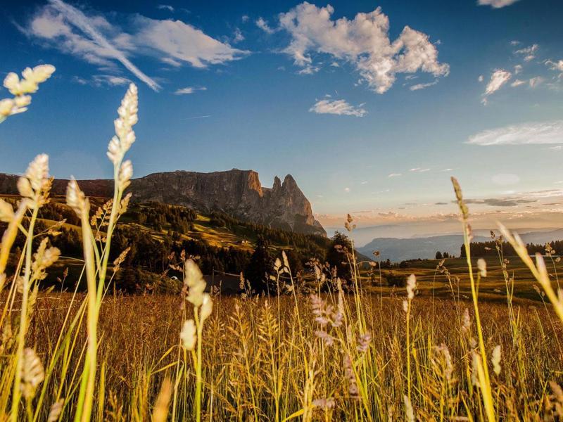 The valley station of the Seiser Alm Cableway is just 500 metres from our Active Hotel Diana, and there is also a ski shuttle. In winter, you can quickly reach the ski slopes and cross-country ski trails on the Seiser Alm. In summer, hikers, mountaineers and climbers get their money's worth, as do mountain bikers, golfers (reduced green fee on the nearby golf course) and horse riders. We offer our guests guided hikes and e-bike tours, and we hire out rucksacks, hiking poles and snowshoes.