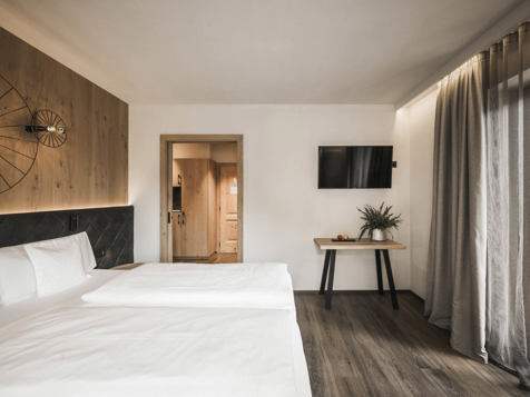 Our luxurious rooms and suites are real feel-good spaces. Our 2,500 sqm wellness paradise also offers wellness oases for every taste: the Dolomites Sky Spa offers guests aged 16 and over a panoramic infinity pool and much more, while the Dolomites Family Spa delights the whole family with pools, dress-on saunas and relaxation areas. The Castello di Dolasilla with its relaxing treatments completes our wellness offer perfectly. Our kitchen team will spoil you with traditional South Tyrolean dishes and Mediterranean specialities, prepared with many high-quality products from the region. Connoisseurs will also appreciate our wine cellar and cocktail bar.