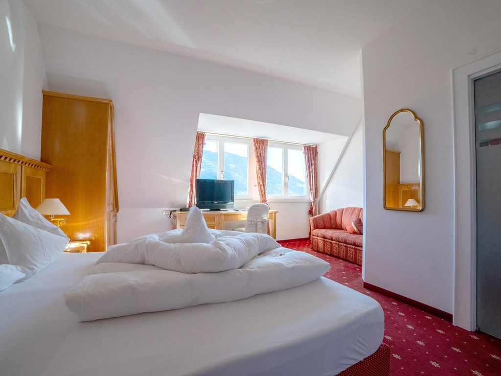 The rooms at Villa Maria are classically and cosily furnished and offer everything you need for a relaxing stay: Shower, WC, satellite TV, telephone and a balcony or large terrace with a marvellous view. The spacious apartments in the neighbouring annexe Chalet Marii, which is directly adjacent to the villa, offer even more space. Here you can stay in modern, light-flooded apartments with high-quality furnishings, ideal for longer stays. If you wish, you can also book breakfast in the main building. The large panoramic terrace, the lounge corner in the garden and the house bar invite you to relax.