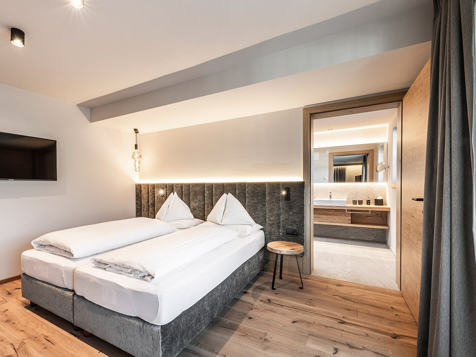 The Hotel Olympia**** in Reischach near Bruneck is ideal for those who want to spend an active holiday at the foot of Mt. Kronplatz, full of relaxation and nature enjoyment. A paradise for those seeking peace and quiet, with warm hospitality. A place where you can regenerate body and mind and spend wonderful days. Our rooms and suites are spacious and brightly furnished, made of light oak wood, with natural colours and with clean lines. The large windows of our modern rooms open up a dreamlike view of Mt. Kronplatz and the green meadows of Reischach.