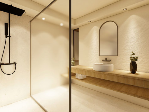 The Alea Living holiday flats for 2-4 or 2-6 people are spread over three floors and are available in the GREEN / BORDEAUX and GOLD categories. Each unit has a fully equipped kitchen, a spacious living area and a south-facing balcony. Special features such as an infrared cabin in selected apartments provide additional comfort. On the ground floor, the in-house café with ice cream parlour invites you to linger – whether for breakfast, a cappuccino or an aperitif in the evening.