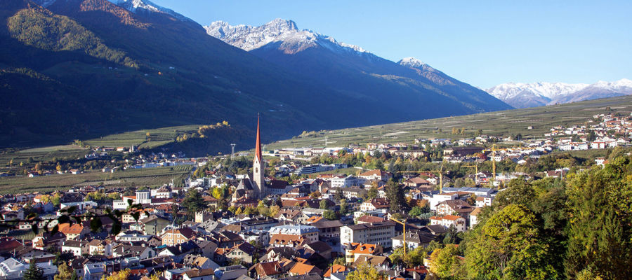 Brenner motorway A22, exit Bozen Süd, motorway MEBO, exit Meran, Vinschgau state road SS38 to Glurns