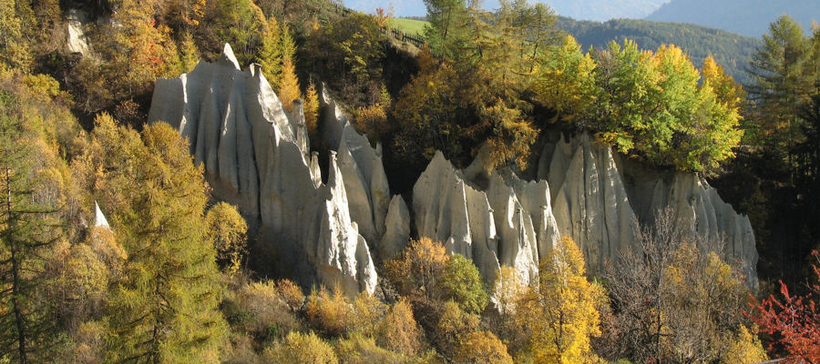 The masses of water of the waterfall in Partschins rush out over a free-standing and 97 m high rock wall. Favourable sunshine allows the drops of water to sparkle in all colours of the rainbow. When snow melts in early summer, the waterfall counts 5,000 to 6,000 litres per second.