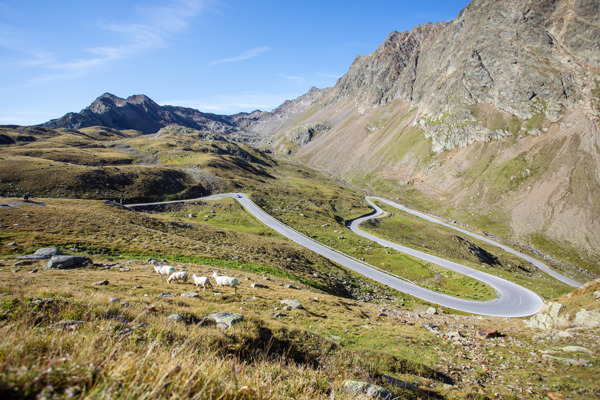 48 tight hairpin bends make the road up to the Stilfser Joch Pass one of the most impressive pass roads in the world.